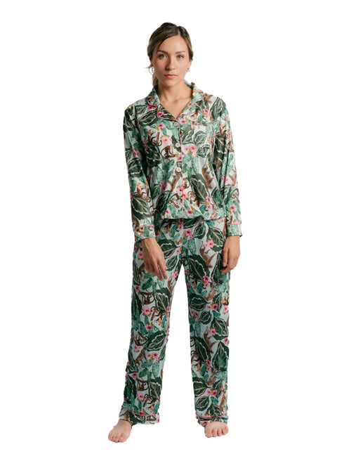 Esta pijama está hecha con una tela muy cómoda y con la mejor calidad. Los diseños de los prints son muy originales y hacen que te veas arreglada y moderna incluso estando en tu casa.